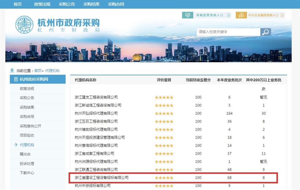 熱烈祝賀我公司被授予杭州市政府采購★★★★★代理